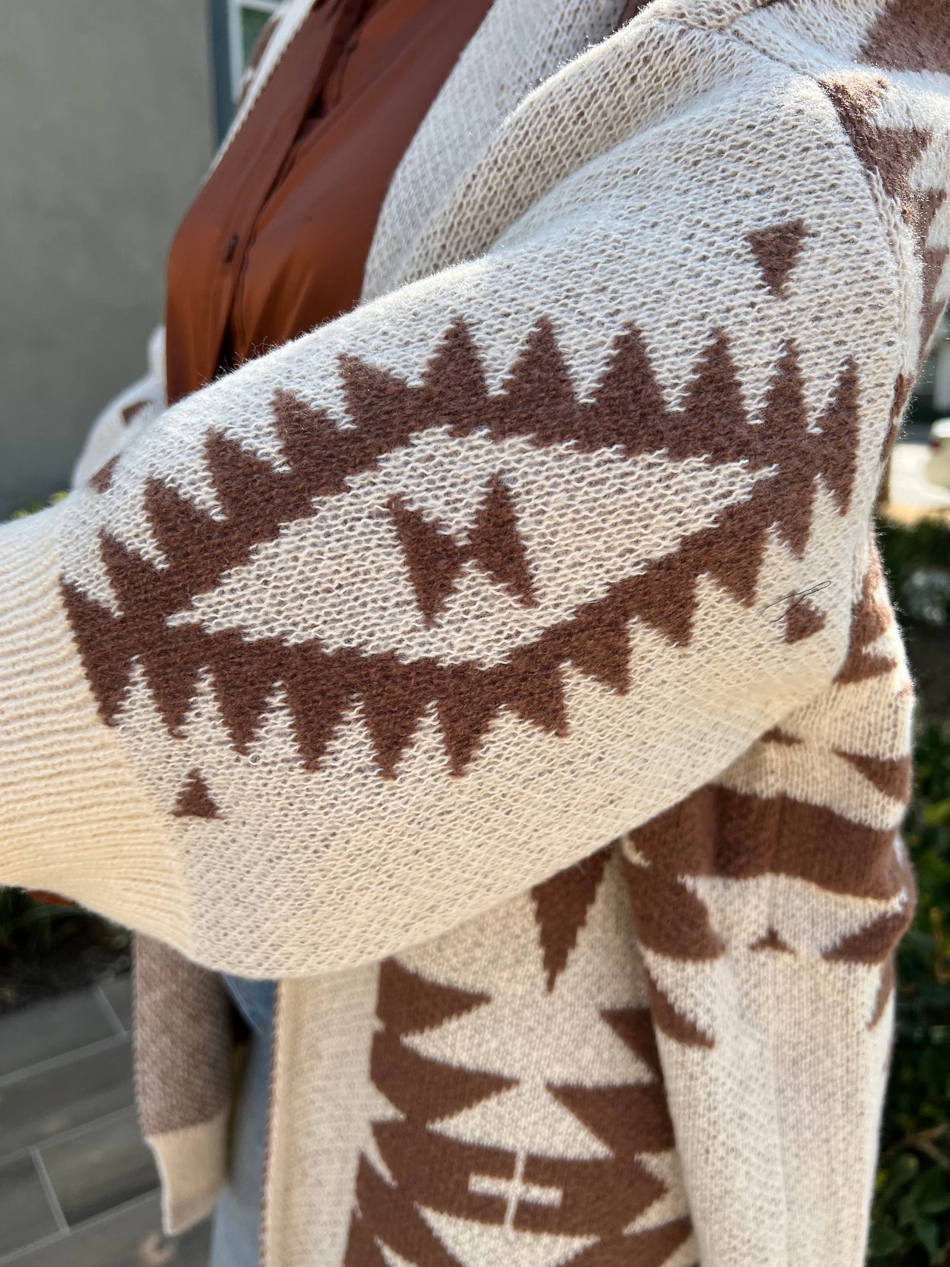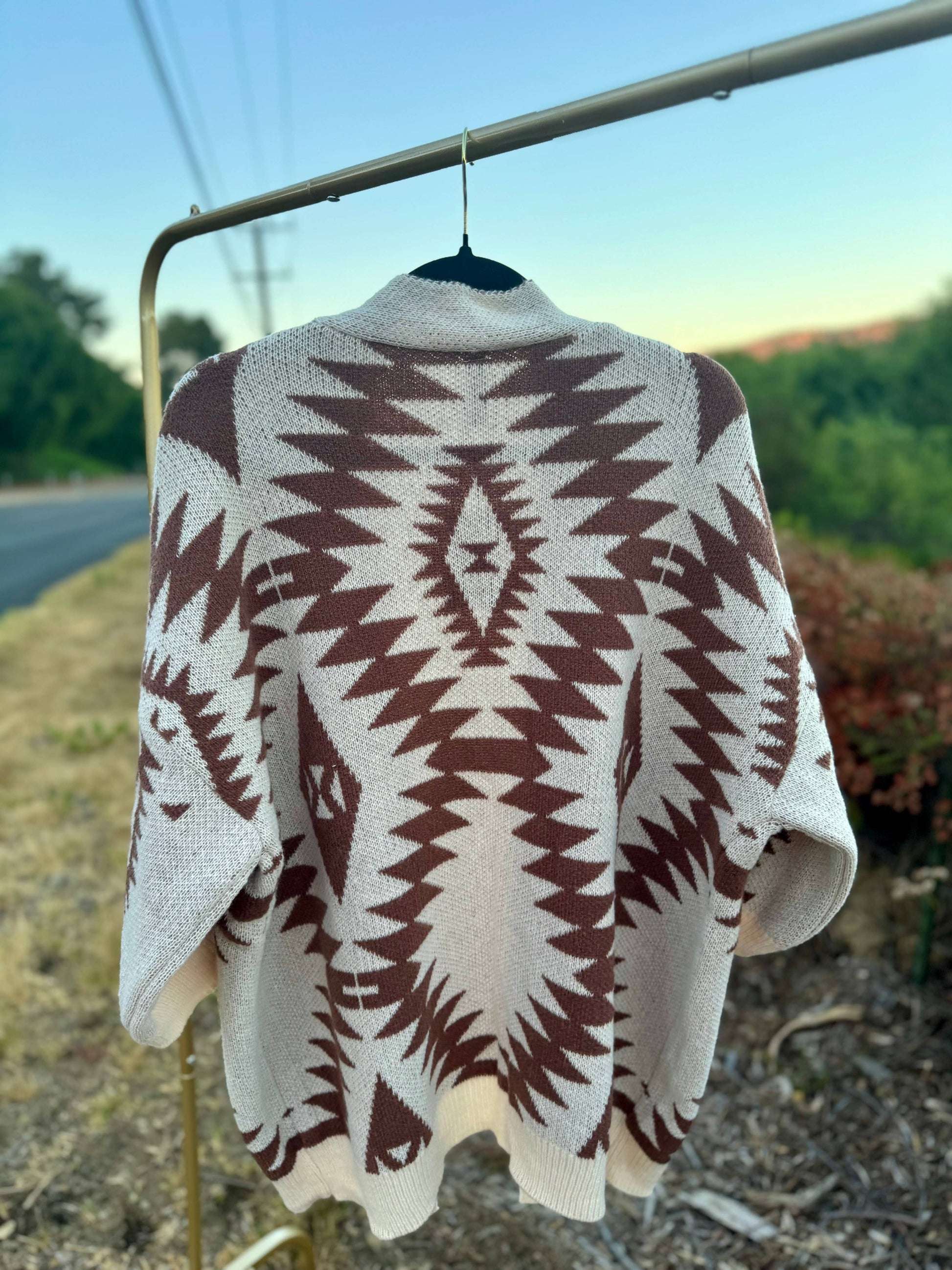 Naomi Wilde | Aztec Styled Cardigan with Large Arms: Brown one size